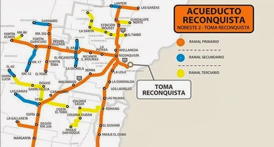 de agua de la toma de Reconquista coinciden con el curso de agua del Arroyo El