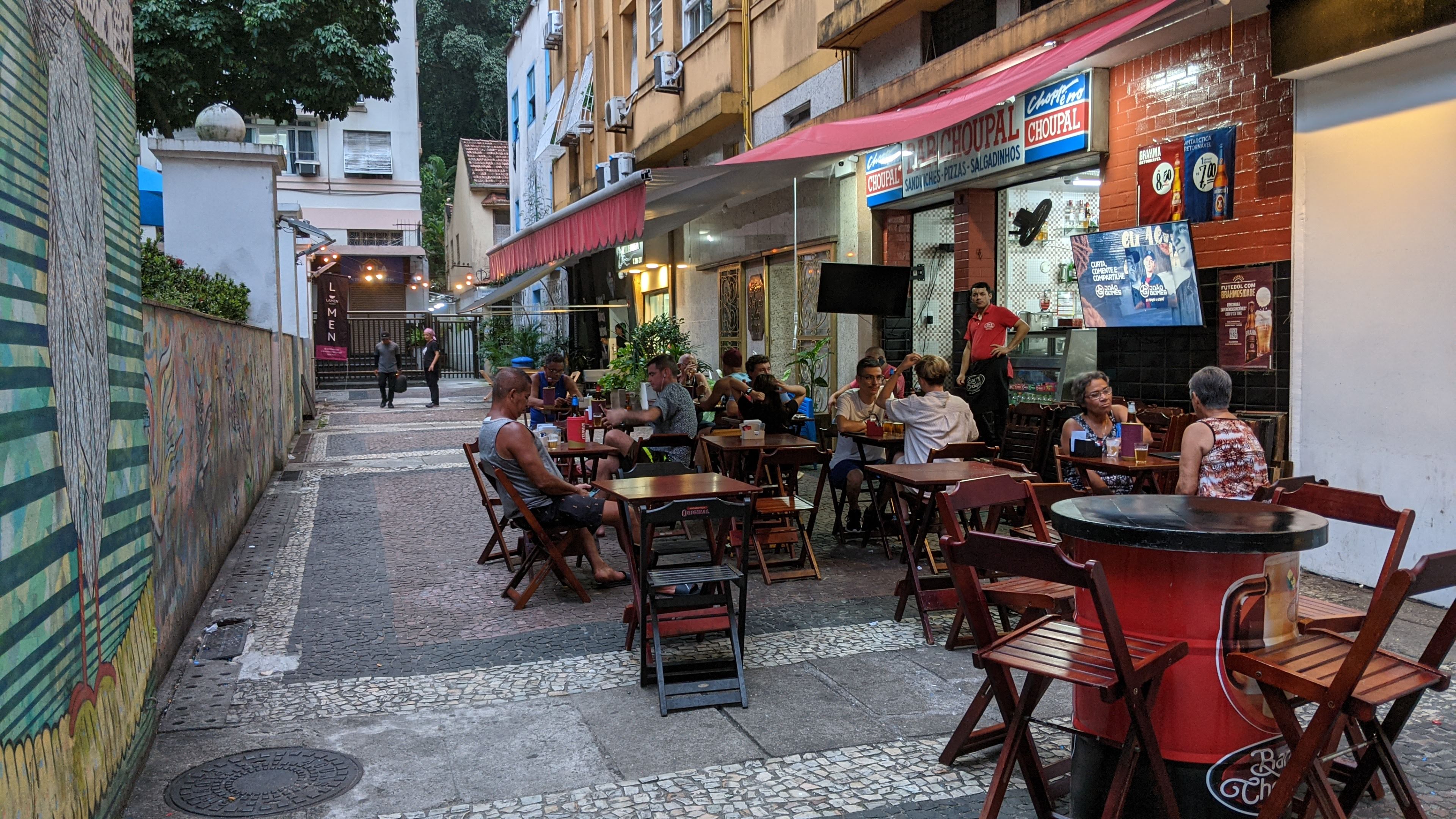 La “última noche”, seguí el flow. Fuimos con mis “bro” de cuarto (brasileros) fue para estar rodeado de brasileros y turistas extranjeros, la pasé genial. El lugar elegido fue en el centro de LAPA, Leviano Bar, una calle que cuenta con varios PUB. Hacía mucho que no me sentía rodeado de gente fantástica, algunas anécdotas de la noche. Compro dos tequilas para convidar a dos chicas muy lindas (las brasileras están en el TOP de las mujeres más hermosas del planeta), pero la mala suerte hizo que alguien volcara medio chupito de tequila, así que me terminé tomando un chupito y medio de tequila yo solo.